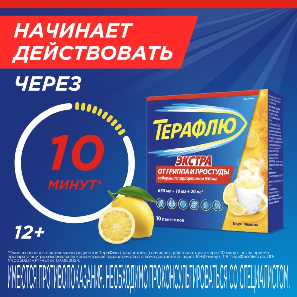✓ Цена на ТераФлю Экстра порошок д/пригот. р-ра д/приема внутрь Лимон, №10 указана на сайте и в мобильном приложении