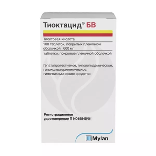 ✓ Купить Тиоктацид БВ таблетки покрыт. п/о 600мг, №100 можно на сайте, в мобильном приложении и в аптеках Вита