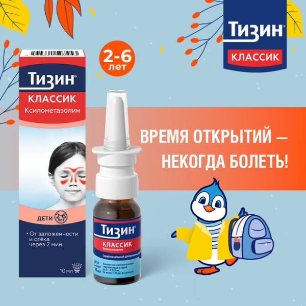 ✓ Подробная инструкция по применению Тизин Классик спрей назальный 0,05 %, 10мл, Дельфарм Орлеан