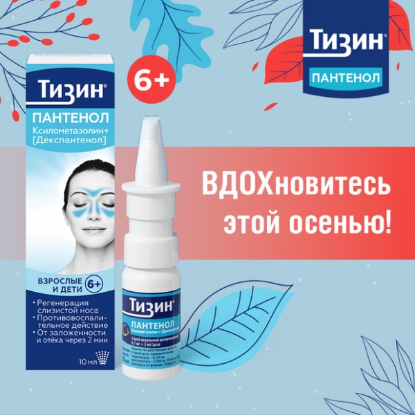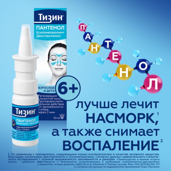 ✓ Подробная инструкция по применению Тизин Пантенол спрей назальный дозированный 0,1мг+5мг/доза, 10мл