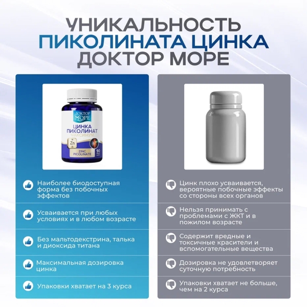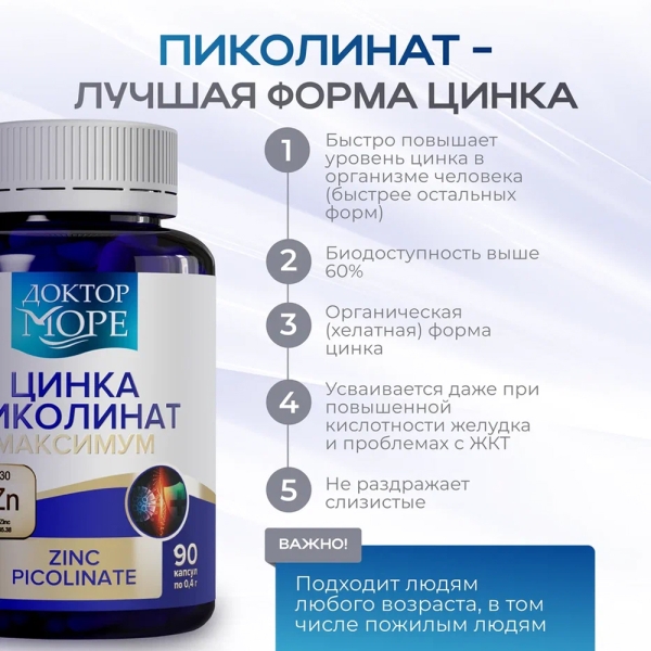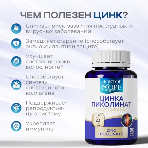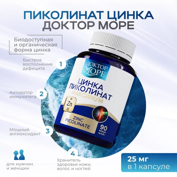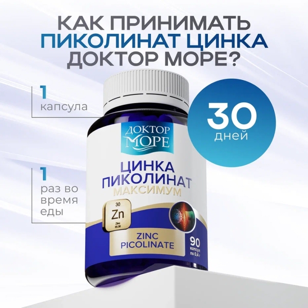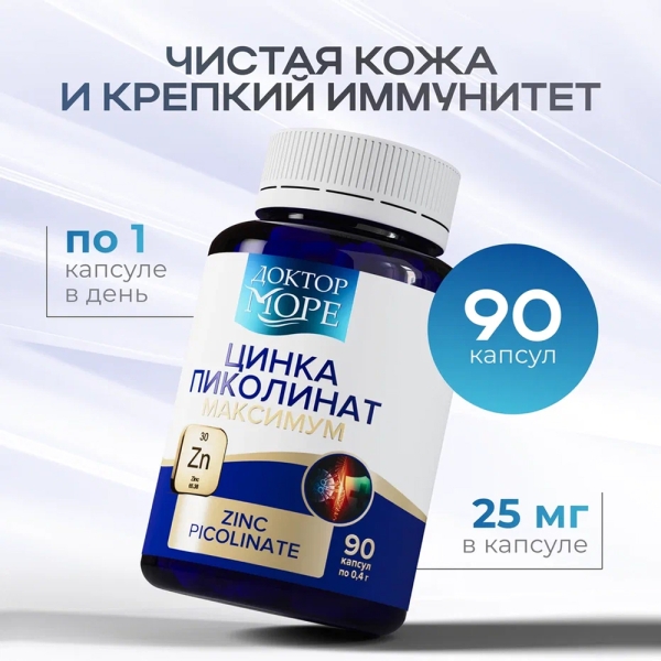 ✓ Цена на Доктор Море Цинка пиколинат максимум капсулы 25мг, №90 указана на сайте и в мобильном приложении