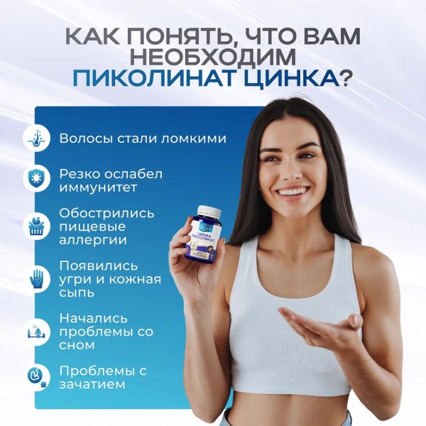 Пиколинат – наиболее активная и биодоступная форма цинка, которая повышает уровень цинка в крови быстрее всех остальных форм.