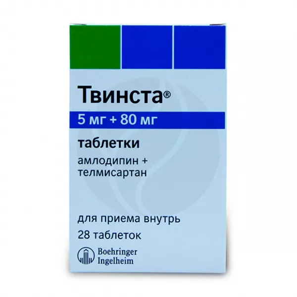 Комбинированный антигипертензивный препарат, содержащий два активных компонента с взаимодополняющим действием, позволяющих контролировать АД у пациентов с артериальной (эссенциальной) гипертензией: антагонист рецепторов ангиотензина II (телмисартан) и блокатор медленных кальциевых каналов, производное дигидропиридина (амлодипин). Комбинация этих веществ обладает аддитивным антигипертензивным действием, снижая АД в большей степени, чем каждый компонент по отдельности. Препарат Твинста®, принимаемый 1 раз/сут, приводит к эффективному и устойчивому снижению АД в течение 24 ч.
