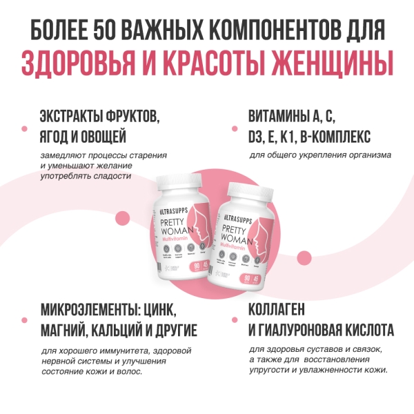 ✓ Купить Ultrasupps Витаминно-минеральный комплекс для женщин Pretty Woman таблетки, №60 можно на сайте, в мобильном приложении и в аптеках Вита