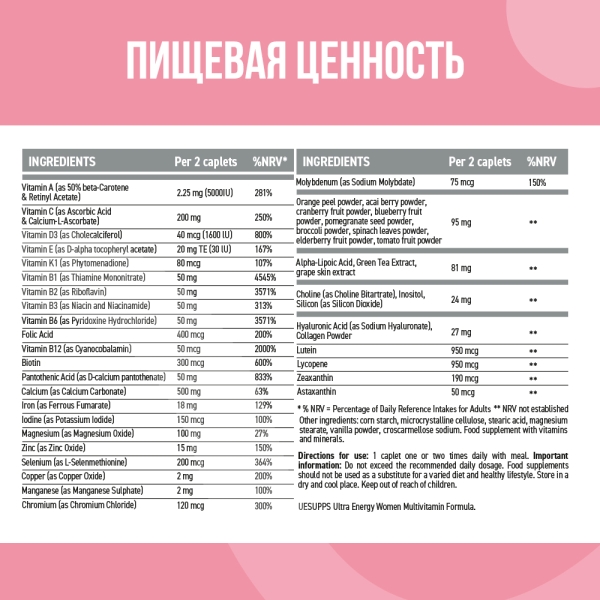✓ Подробная инструкция по применению Ultrasupps Витаминно-минеральный комплекс для женщин Pretty Woman таблетки, №60