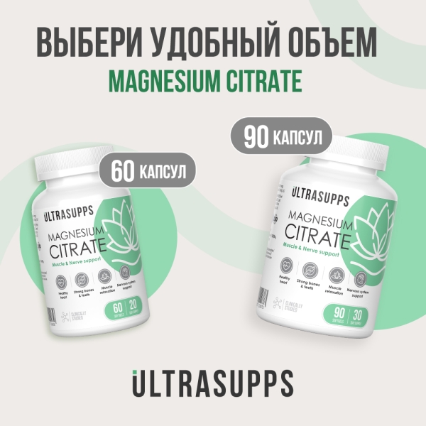 ✓ Цена на Ultrasupps Магния цитрат капсулы, №60 указана на сайте и в мобильном приложении