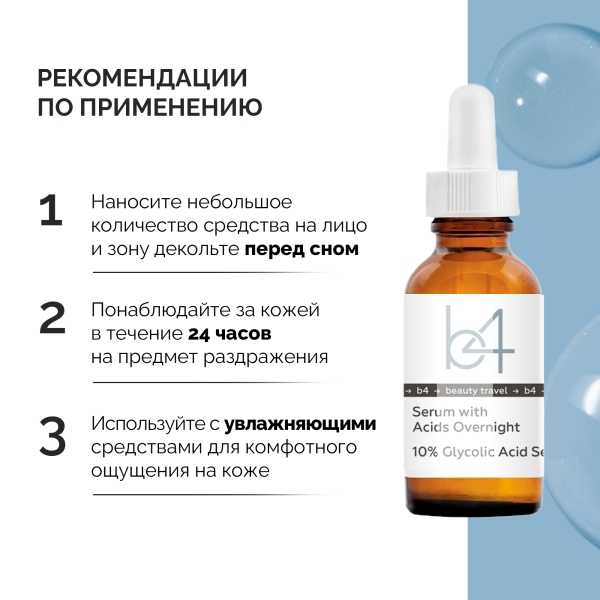 ✓ Подробная инструкция по применению b4 Monoserums Моносыворотка ночная с гликолевой кислотой 10%, 30мл