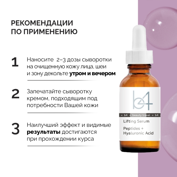 ✓ Подробная инструкция по применению b4 Monoserums сыворотка с гиалуроновой кислотой, пептидами и лифтинг эффектом, 30мл