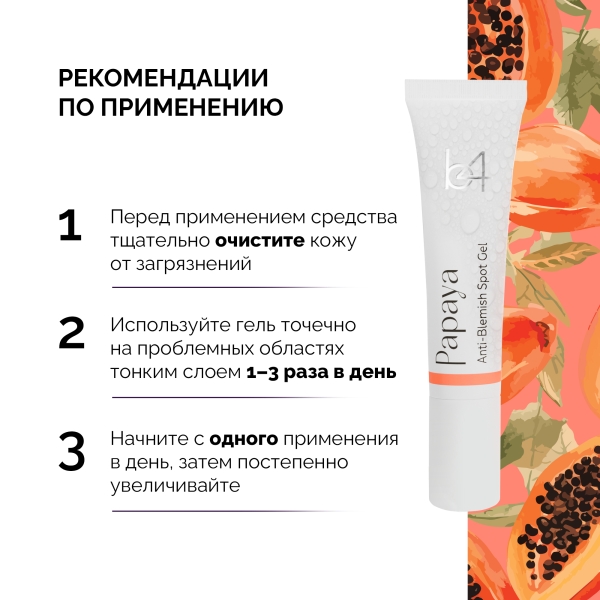 ✓ Подробная инструкция по применению b4 Papaya гель от следов постакне точечный с папайей, 15мл