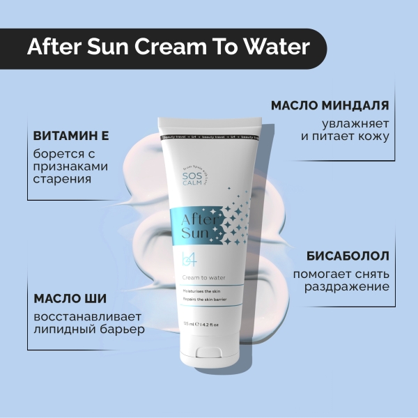 Уменьшает раздражение кожи после солнца, обеспечивает комфорт