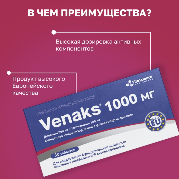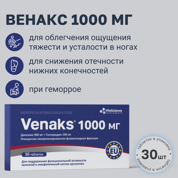 ✓ Купить Vitascience Венакс таблетки 1000 мг, №30 можно на сайте, в мобильном приложении и в аптеках Вита