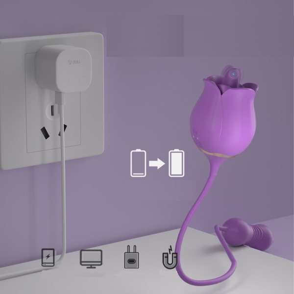 Вибростимулятор, в виде бутона красной розы с языком, красный.