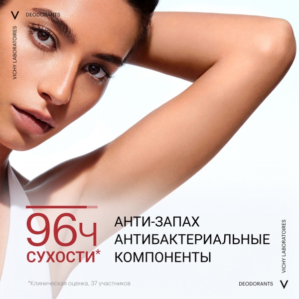 Антиперспирант: Формула с клинически доказанной эффективностью обеспечивает максимальную сухость кожи зоны подмышек и защищает от избыточного потоотделения до 96 часов