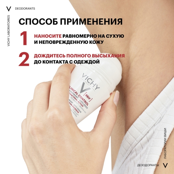 ✓ Подробная инструкция по применению Vichy Deodorants Clinical Control дезодорант-антиперспирант шариковый, 50мл