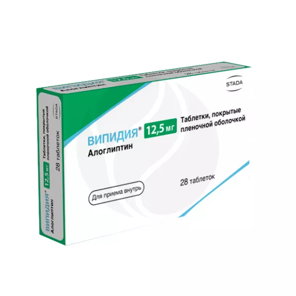 Рекомендуемая доза препарата Випидия® составляет 25 мг один раз в сутки в качестве монотерапии или в дополнение к метформину, тиазолидиндиону, производным сульфонилмочевины или инсулину, или в качестве трехкомпонентной комбинации с метформином, тиазолидиндионом или инсулином. Препарат Випидия® может приниматься независимо от приема пищи. Таблетки следует проглатывать целиком, не разжевывая, запивая водой.