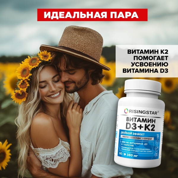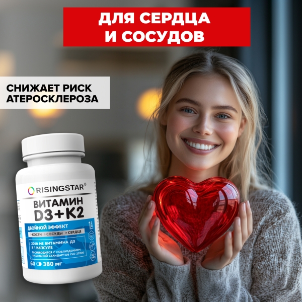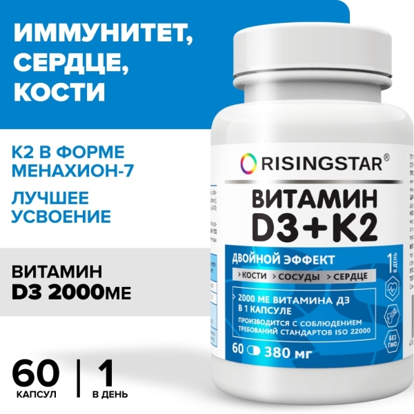 ✓ Купить Risingstar Витамин К2+Д3 Двойной эффект капсулы 2000МЕ+30мкг, №60 можно на сайте, в мобильном приложении и в аптеках Вита