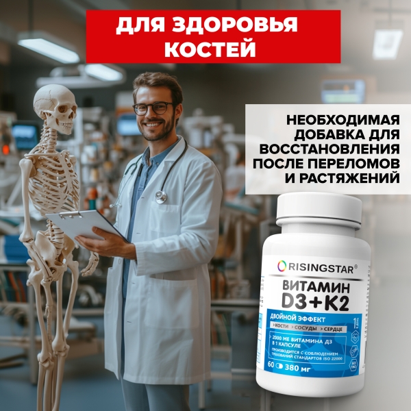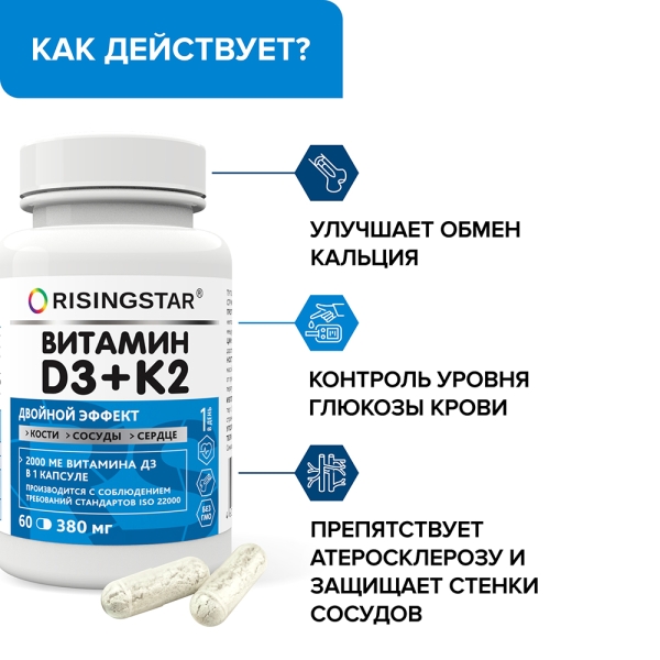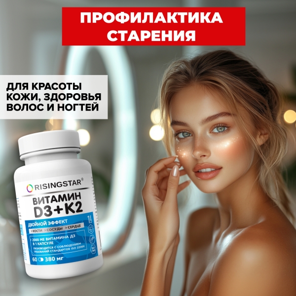 ✓ Подробная инструкция по применению Risingstar Витамин К2+Д3 Двойной эффект капсулы 2000МЕ+30мкг, №60