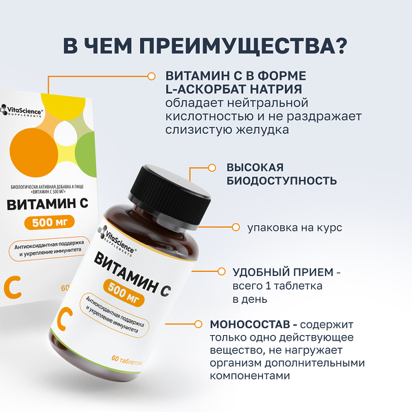 ✓ Купить Vitascience Витамин С таблетки 500мг, №60 можно на сайте, в мобильном приложении и в аптеках Вита