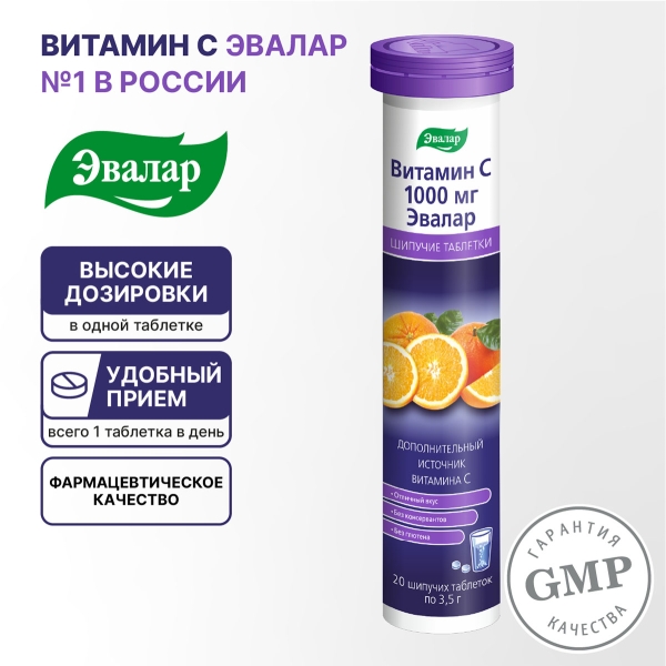 ✓ Купить Эвалар Витамин С таблетки шипучие 1000мг, №20 можно на сайте, в мобильном приложении и в аптеках Вита