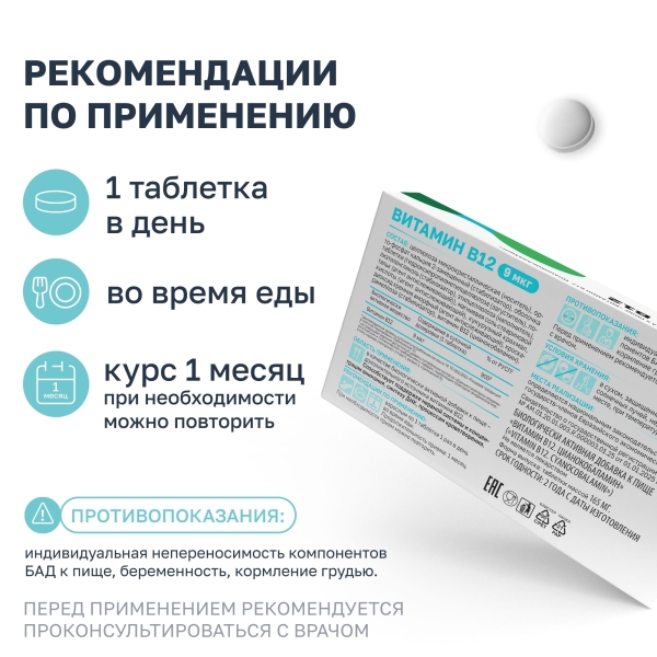 ✓ Подробная инструкция по применению Vitascience Витамин В12 таблетки 9мкг, №60