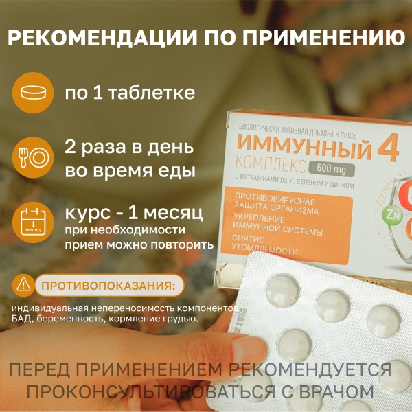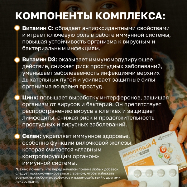 ✓ Подробная инструкция по применению Vitascience Иммунный комплекс 4 с витаминами D3, С, Se,Zn таблетки, №30