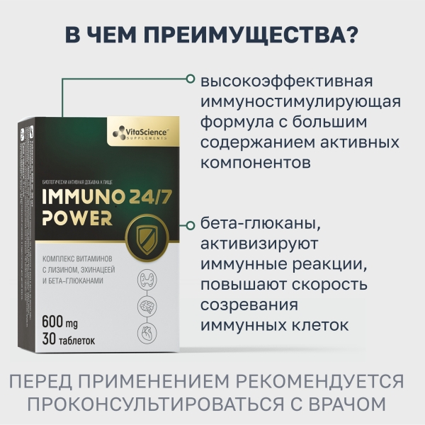 ✓ Цена на Vitascience Иммуно Пауэр 24/7 таблетки, №30 указана на сайте и в мобильном приложении