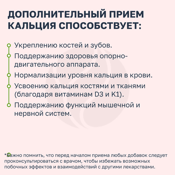 В качестве биологически активной добавки к пище – дополнительного источника кальция, витаминов D3 и К1.