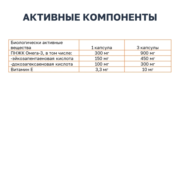- ПНЖК, Омега3 - 1кап. 300мг (15%*), 3кап. 900мг (45%*)