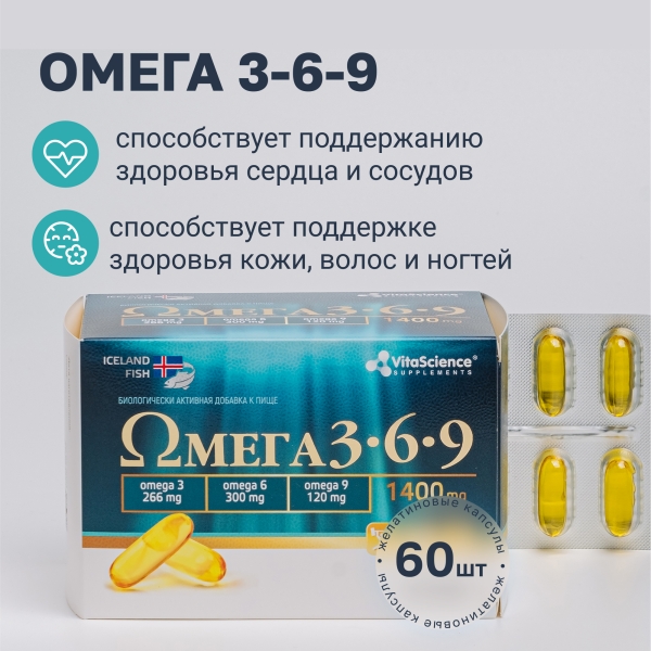 ✓ Цена на Vitascience Омега 3-6-9 комплекс капсулы, №60 указана на сайте и в мобильном приложении