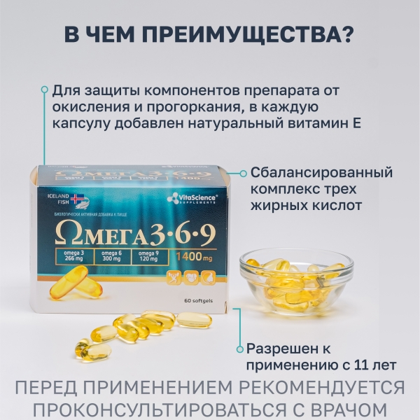 ✓ Купить Vitascience Омега 3-6-9 комплекс капсулы, №60 можно на сайте, в мобильном приложении и в аптеках Вита
