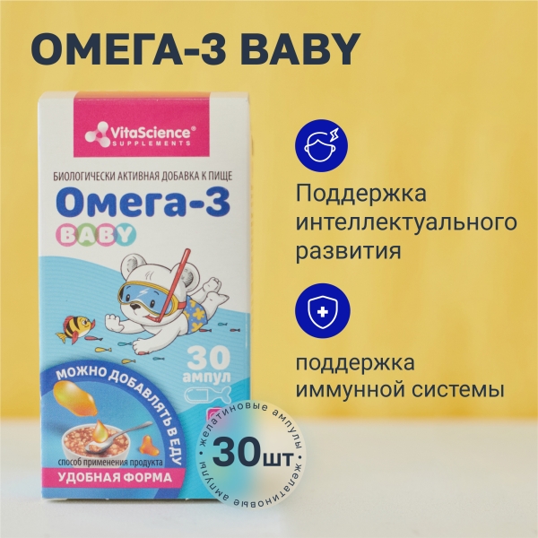✓ Купить Vitascience Омега -3 Бэби ампулы желатиновые, №30 можно на сайте, в мобильном приложении и в аптеках Вита
