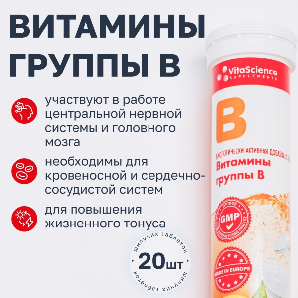 ✓ Купить Vitascience Шипучие витамины Витамины группы В таблетки шипучие, №20 можно на сайте, в мобильном приложении и в аптеках Вита