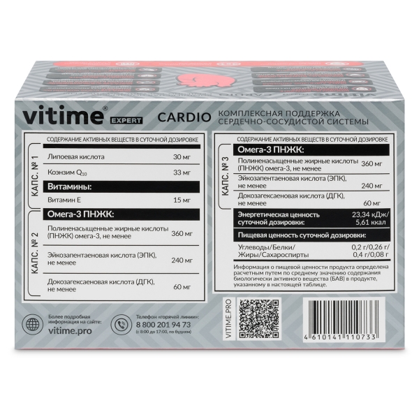✓ Цена на Vitime Эксперт Кардио капсулы, №96 указана на сайте и в мобильном приложении