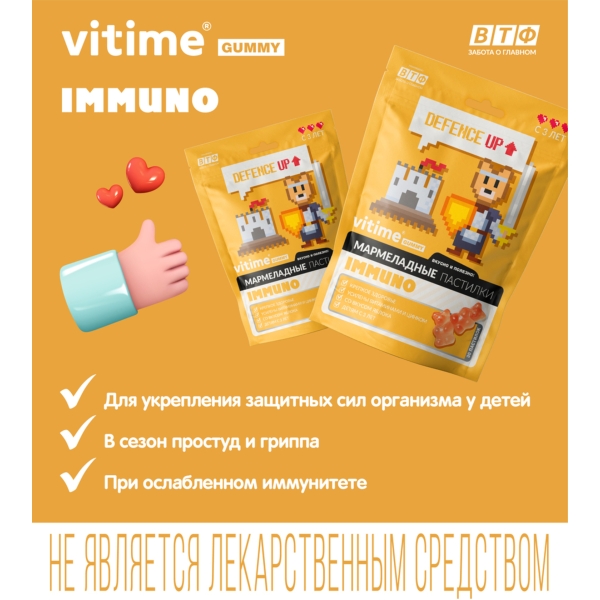 ✓ Цена на Vitime Gummy Иммуно мармеладные пастилки жевательные для детей 3+, №30 указана на сайте и в мобильном приложении