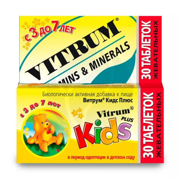 ✓ Цена на Vitrum Кидс плюс таблетки жевательные, №30 указана на сайте и в мобильном приложении