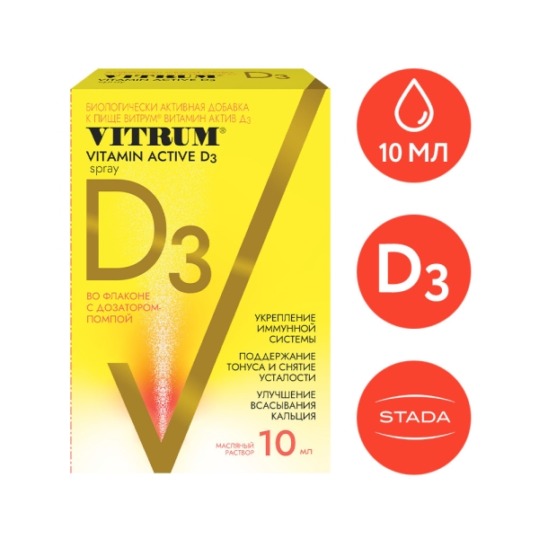 ✓ Цена на Vitrum Витамин Актив Д3 спрей, 10мл указана на сайте и в мобильном приложении