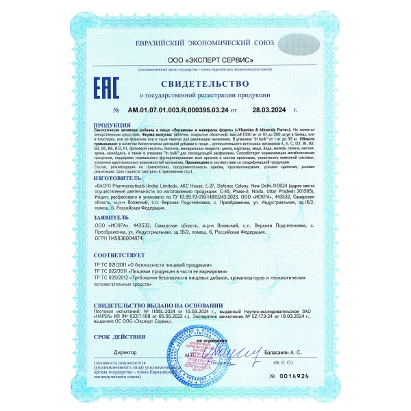 Способствует нормализации метаболических процессов, поддержке нормального функционирования всех органов и систем организма, укреплению иммунной системы, усилению адаптационных возможностей организма.