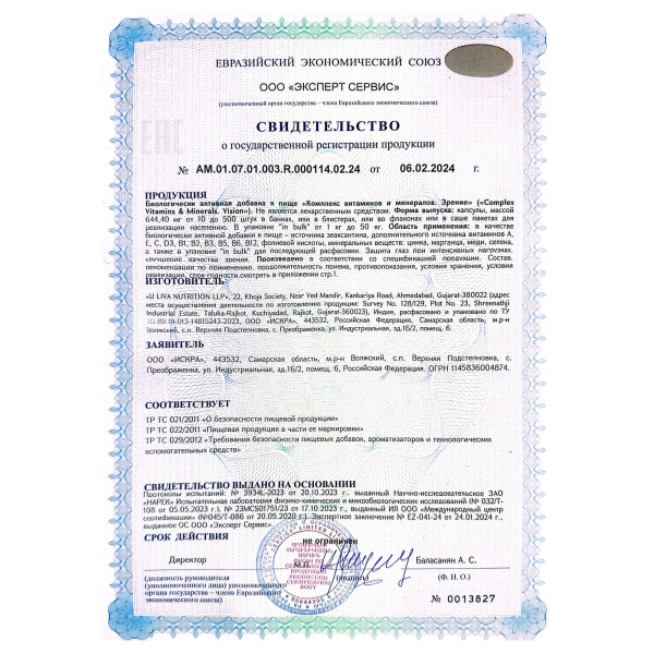 В качестве биологически активной добавки к пище – источника зеаксантина, дополнительного источника витаминов А, Е, С, D3, B1, B2, B3, В5, B6, В12, фолиевой кислоты, минеральных веществ: цинка, марганца, меди, селена.