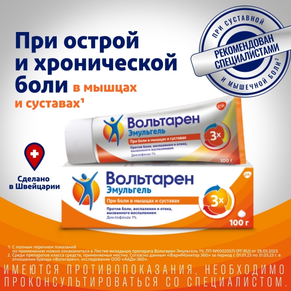 ✓ Цена на Вольтарен Эмульгель д/наружн. прим. 1%, 100г указана на сайте и в мобильном приложении