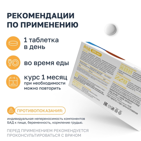 ✓ Подробная инструкция по применению Vitascience Йод таблетки 200мкг, №30