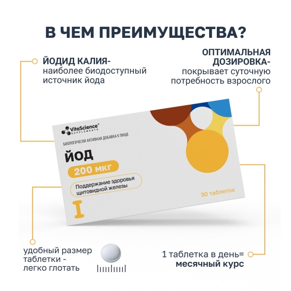 ✓ Купить Vitascience Йод таблетки 200мкг, №30 можно на сайте, в мобильном приложении и в аптеках Вита