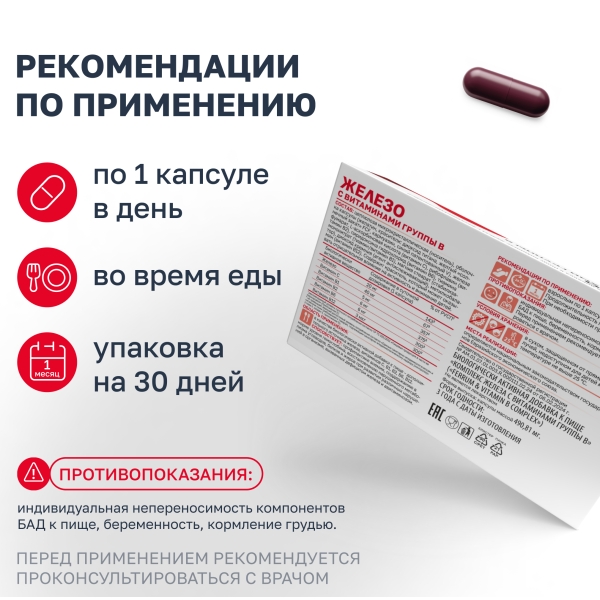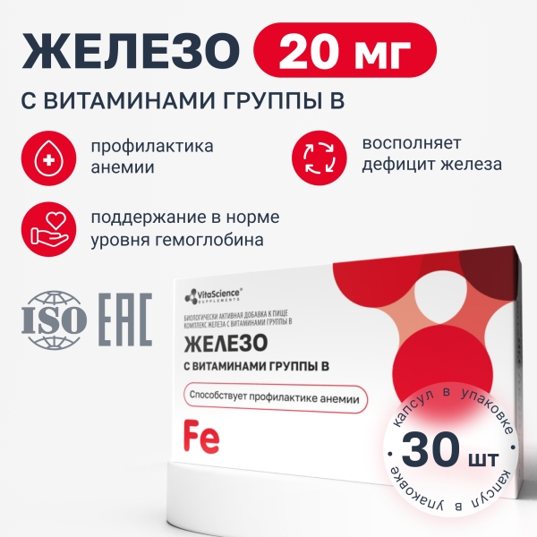 ✓ Купить Vitascience Железо с витаминами группы B капсулы, №30 можно на сайте, в мобильном приложении и в аптеках Вита