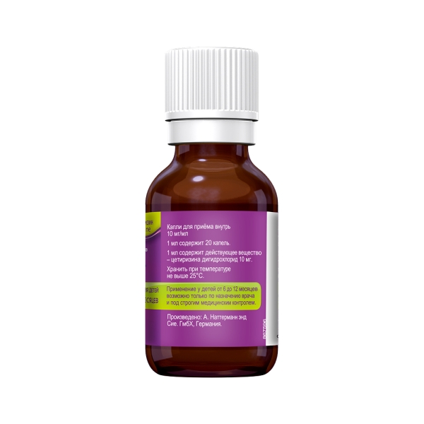 Цетиризин может угнетать центральную нервную систему, поэтому применение препарата у детей от 6 до 12 месяцев возможно только по назначению врача и под строгим медицинским контролем!