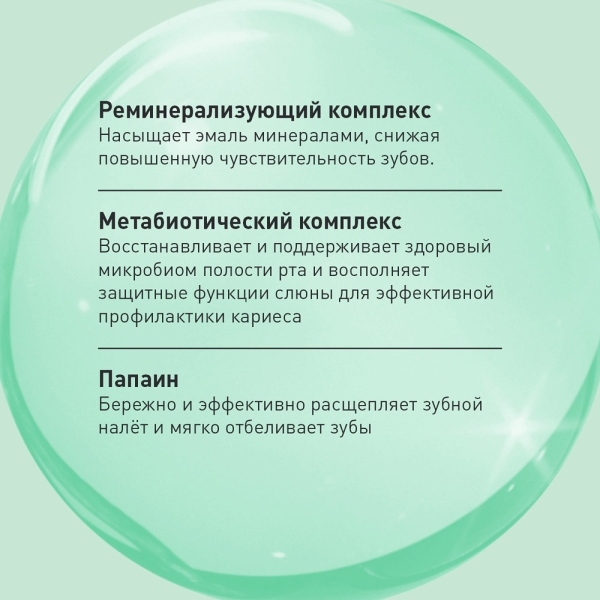 Ферментативная зубная паста комплексного воздействия обеспечивает одновременно бережное отбеливание и укрепление зубной эмали.