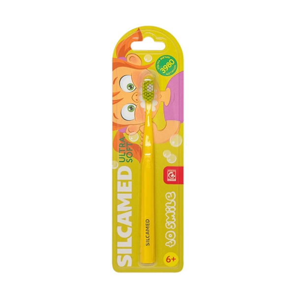 Яркая и стильная зубная щетка SILCAMED TO SMILE гарантирует бережный уход за зубами, не травмирует чувствительные детские десны и не царапает эмаль зубов.