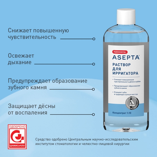 ✓ Купить Асепта Раствор для ирригатора, 250мл можно на сайте, в мобильном приложении и в аптеках Вита