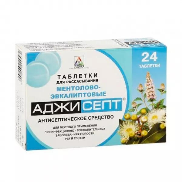Действующие вещества: 2,4-дихлорбензиловый спирт 1,2 мг, амилметакрезол 0,6 мг;