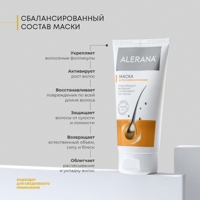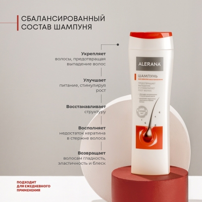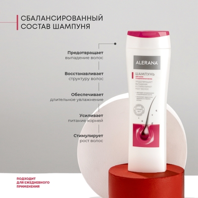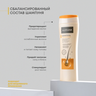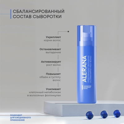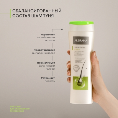 Все средства бренда ALERANA являются негормональными и действуют в первую очередь на корни волос. Узкая специализация серии ALERANA на решении проблемы выпадения волос позволили бренду ALERANA стать экспертом в данной области и уверенно занять лидирующие позиции на российском рынке.