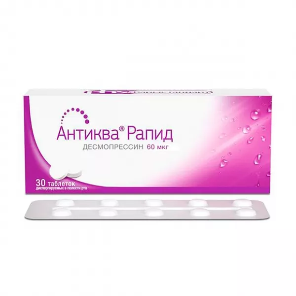 При лечении никтурии у взрослых гипонатриемия чаще развивается в начале приема препарата или при увеличении дозы. Гипонатриемия обратима. При приеме препарата Антиква® Рапид необходимо контролировать водно-электролитный баланс. При лечении возможно развитие артериальной гипертензии вследствие задержки жидкости. У пациентов с ИБС возможно развитие стенокардии.