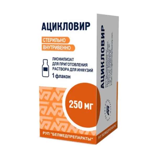 Ацикловир активен в отношении вируса Herpes simplex типов 1 и 2, вируса Varicella zoster, вируса Эпштейна-Барр и цитомегаловируса.